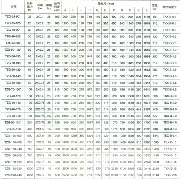 TZG系列給料機兩臺振動電機的電源為三相380V,50Hz。